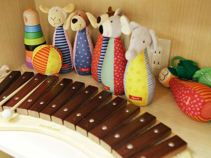 1歳児さんは、隣にお友だちを感じながら、見つめる力を武器に、五感すべてで、指先の巧緻性を高めながら一人遊びを充実させる時間。