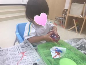 まな先生がおいも堀りの練習用に、つるも作ってくれました。